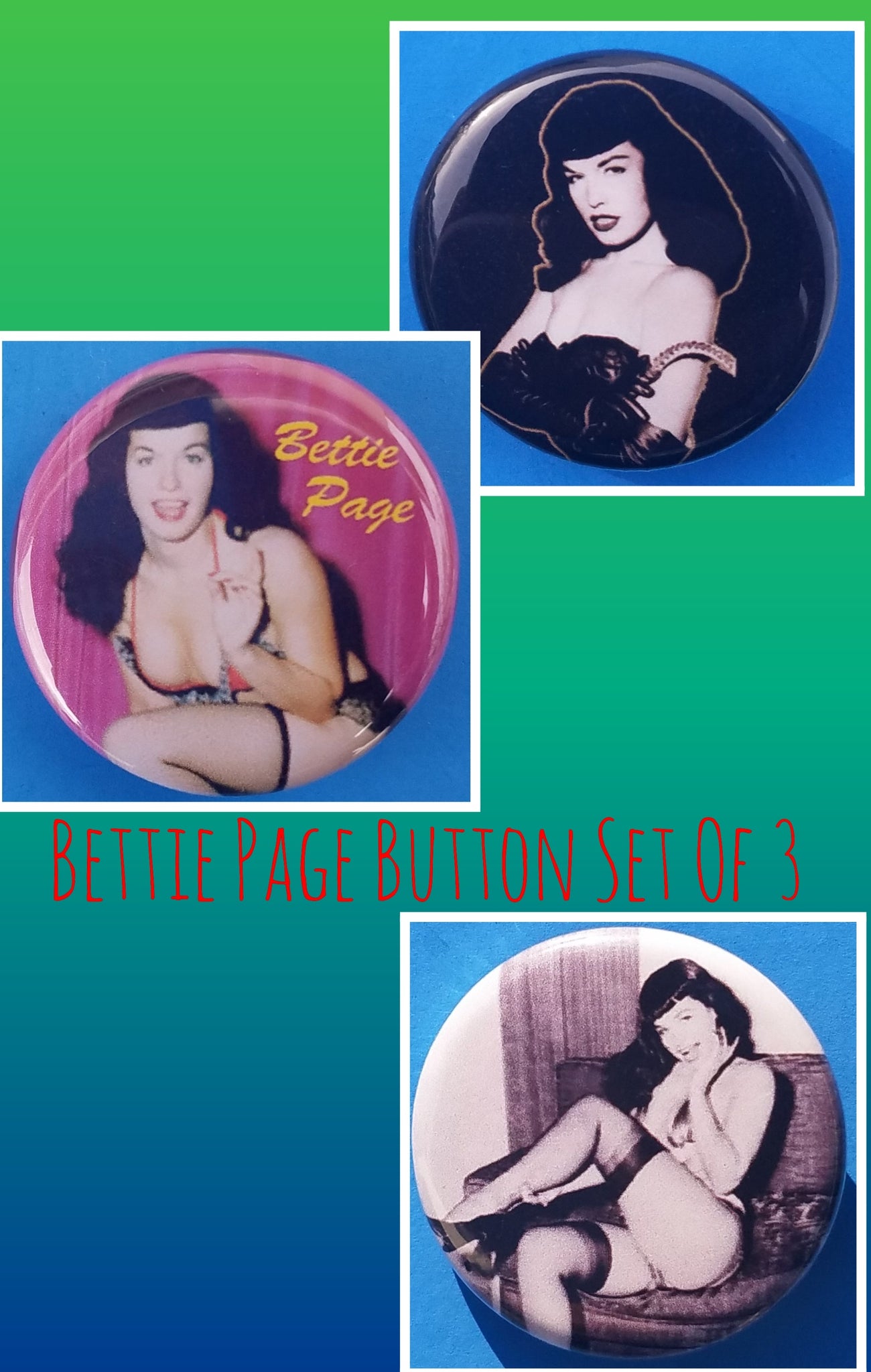 New "Bettie Page Button Set Of Of 3." Fashion Buttons Are 1.25 Inches In Size.