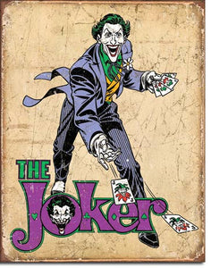 New " The Joker" DC Comic Wall Art Metal Sign. Batman Comic Book Villain. 12.5"W x 16"H. This Is A Brand New, Officially Licensed Product. This is a Reproduction Of A Classic Vintage Sign. It Has Pre-Punched Holes For Easy Hanging. Manufactured With Folded Edges For Safety, Durability and Stability. Sign May Have Intentional Distressing As Part Of The Look. Made In The U.S.A.